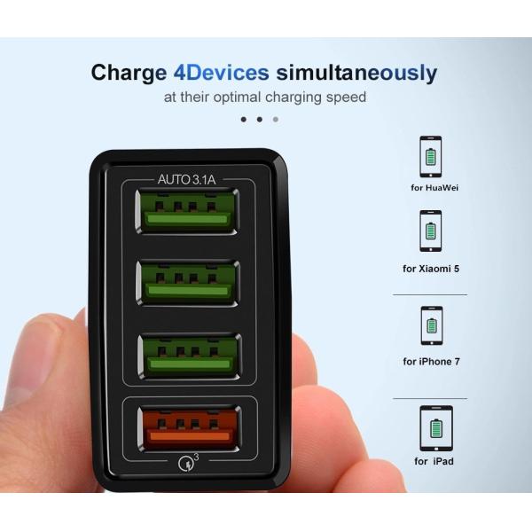 4-Port USB Wall Charger Quick Charge 3.0 18W &3.1A USB A Power Adapter Multi USB fast charger